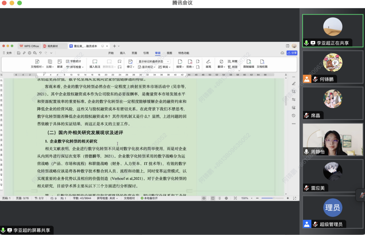 2023年9月27日19:30—21:30,tyc122cc太阳成集团第四十九期“会计博士论坛”在腾讯会议举行,此次论坛活动的主题是公司老师就22级研究生开题报告进行审读并提出修改意见。本次活动分两组进行,分别由温雅丽博士、周静怡博士主持,周静、朱郭一鸣、李亚超、席晶等老师参与点评,共五十余名师生参加。