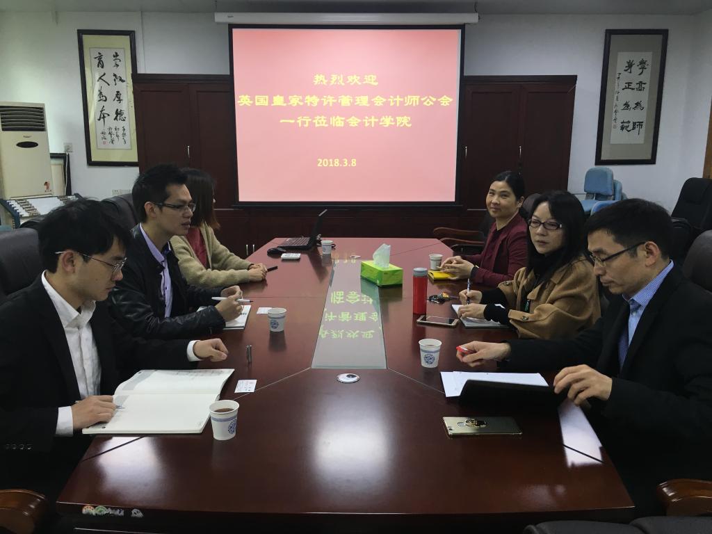 2018年3月8日上午,英国皇家特许管理会计师公会和财金通教育一行莅临tyc122cc太阳成集团进行合作交流。tyc122cc太阳成集团文芳经理、马鹏副经理、黄锡榜副书记、会计系主任罗书章教授和审计系主任舒利敏博士出席了会议。