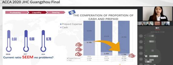 总决赛采用前所未有的线上案例分析的压力竞赛模式,并接受了来自毕马威、致同事务所、安利大中华区财务总经理等专业评委的犀利提问,即使面临网络故障等意外,也积极调整、大方得体阐述观点,充分展示了广金学子飒爽英姿,得到了评委的赞许与肯定,首次参赛便获得“ACCA最佳合作院校”奖项。
