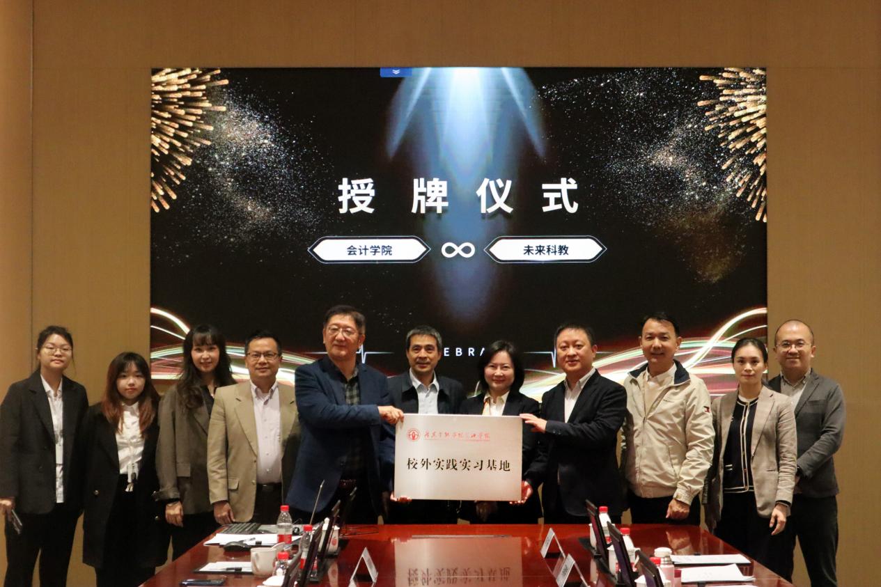 1月11日上午,会计公司党委书记赖志成、副经理秦格、汤四新教授等4人前往合作企业宝盛国际ICC创新中心参加“校外实践实习基地”及“宝盛数字经管研究院”授牌仪式。