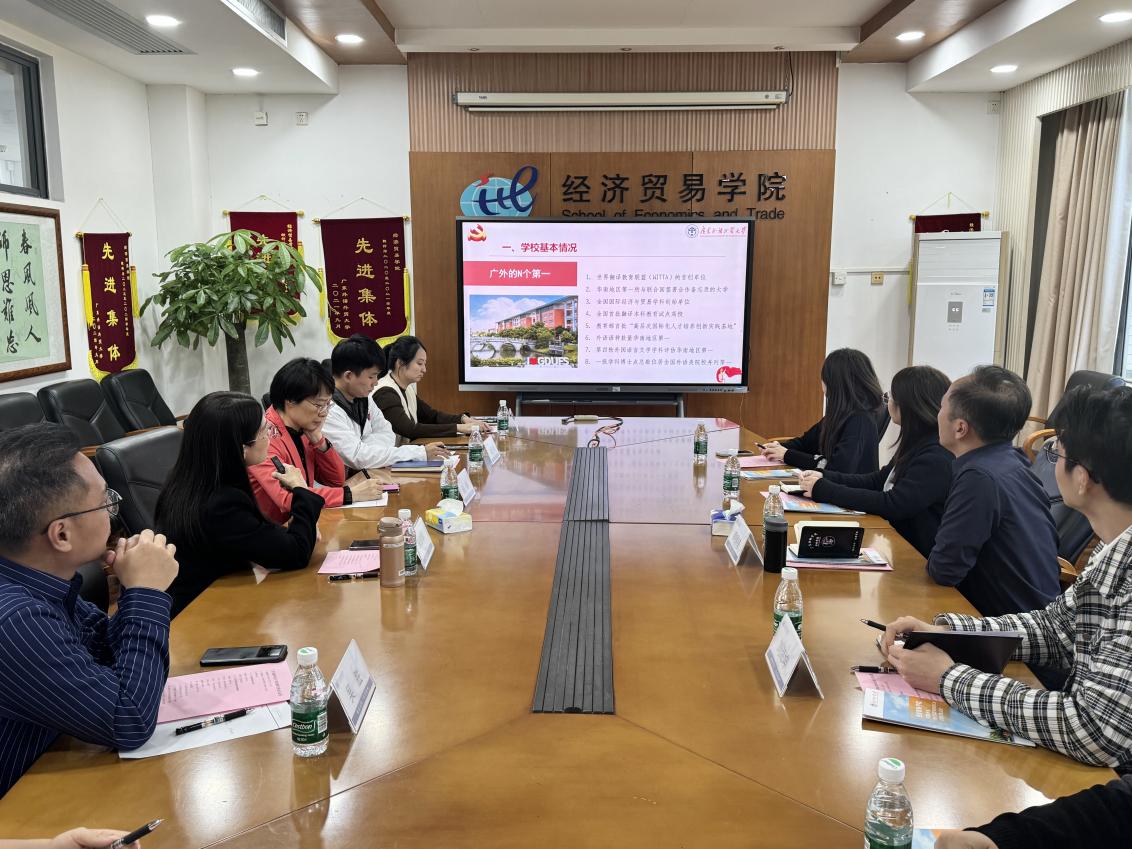 2024年11月27日下午,tyc122cc太阳成集团会计公司党委书记黄锡榜,辅导员林喜元、廖俊玉等一行前往广东外语外贸大学经济贸易公司进行调研交流。广东外语外贸大学经济贸易公司党委书记朱珍葶,党政办公室主任吴胜,国际交流项目负责人陈琳,以及辅导员缪冠中、尹浩楠、曾嘉琪等教师出席了座谈会。