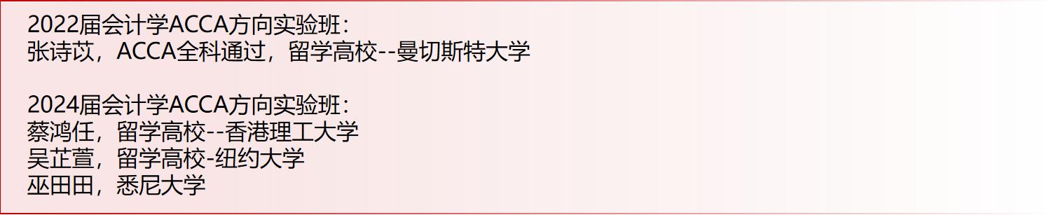 (注:请勿相信任何声称广金老师的ACCA实验班招生电话,招生信息及联系方式以上述为准。招生过程不收取任何费用,正式录取名单公示结束后留意公司收费通知。)