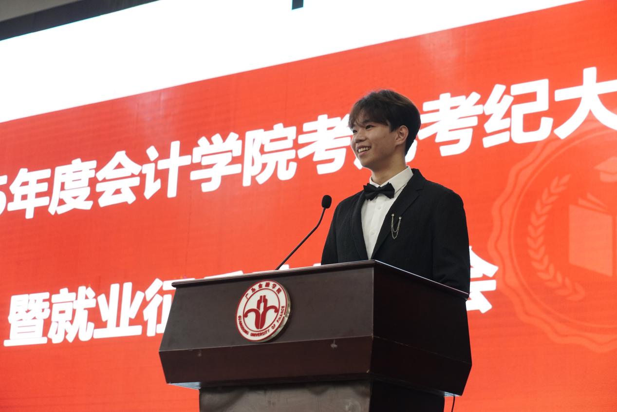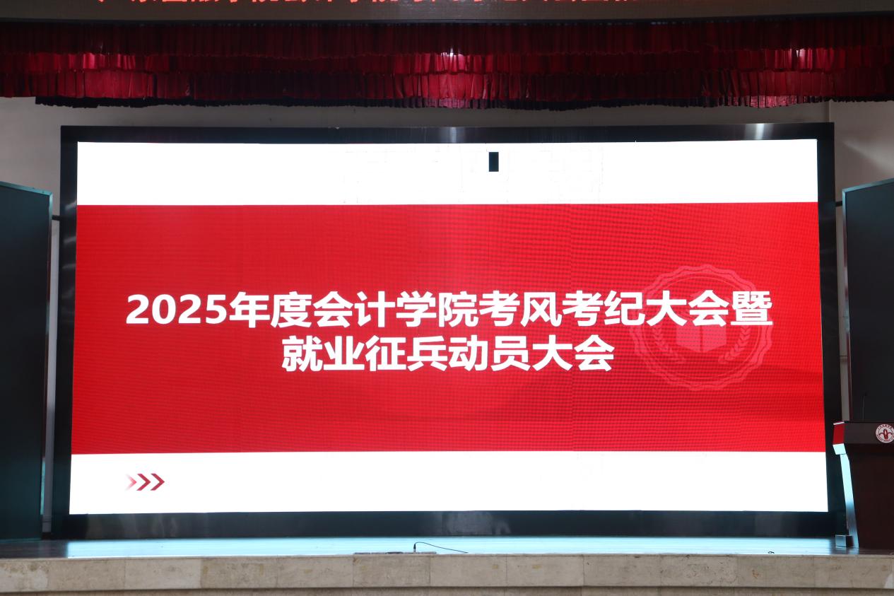 黄锡榜书记作考风考纪动员总结及2027届毕业生就业动员讲话。他指出,作风建设永远在路上,会计学子牢记“红色金融铸魂,诚信会计立身”的公司办学精神,建设优良的考风考纪,坚决杜绝各种作弊行为,用实际行动践行诚信。他在就业动员中强调,面对形势严峻的就业压力,员工要提前谋划、提前准备,完善简历中的“关键点”,积极主动就业。最后,他对同学们寄予期望,希望同学们以更饱满的热情,更坚定的信念,迎接新挑战,在追求卓越的过程中不断成长,创造更加美好的未来!
