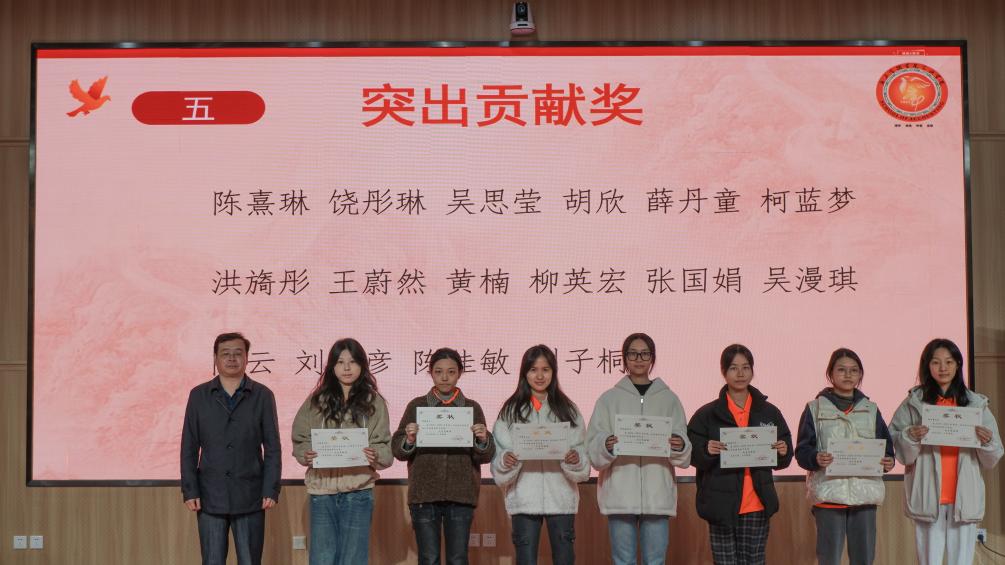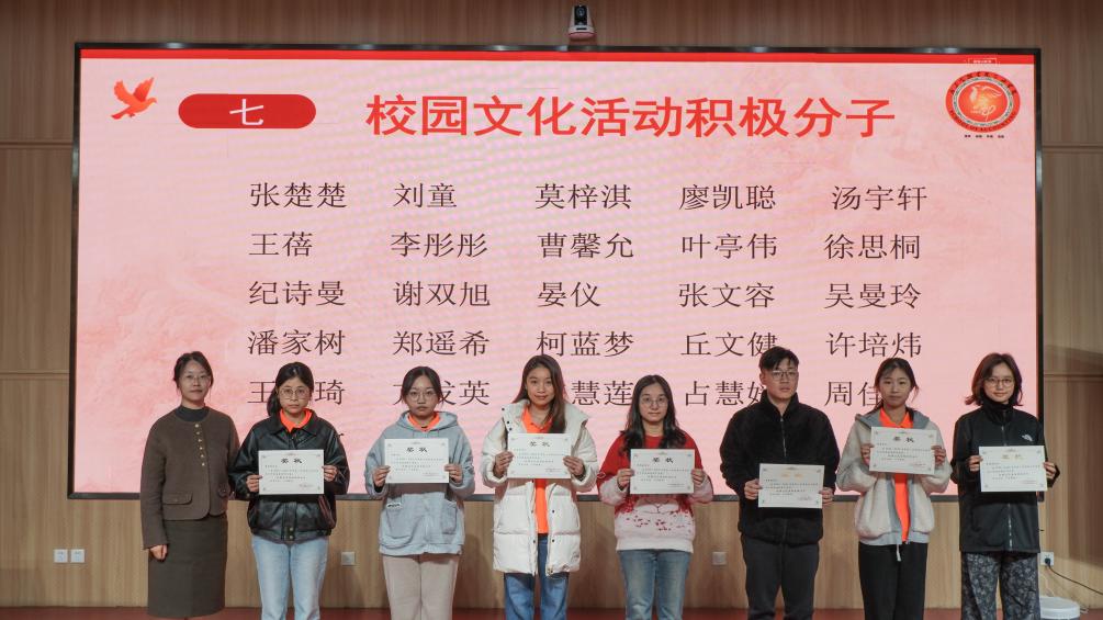 颁奖环节,获奖代表上台领奖,领导和老师为获奖代表颁奖。