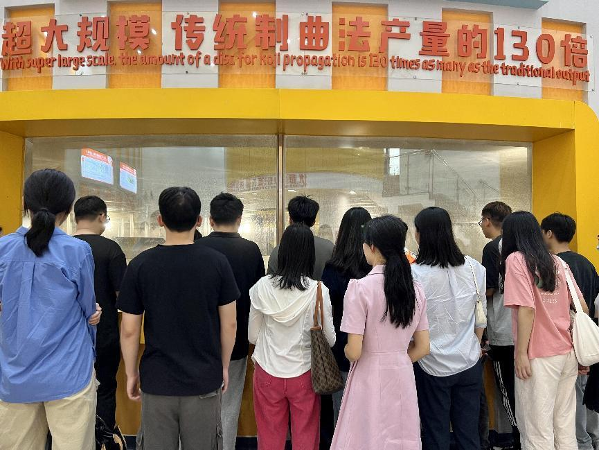 随后,同学们来到智能化生产车间参观海天产品的生产过程,分别参观了天然酿晒场、旋转圆盘、极速灌装包装车间、立体仓库和尖端品控部门。天然酿晒场和旋转圆盘展示了海天酱油的传统酿造过程和独特风味。在极速灌装包装车间和立体仓库,同学们参观了海天世界领先的智能化包装生产线和全自动无人操作立体仓库,体会了海天味业产品包装和仓储管理的智能化与高效率。在尖端品控部,同学们了解了海天味业对研发的高度重视和对产品质量的严格把控,对海天产品的品质有了更深入的认识。通过这次参观,同学们全面了解了海天味业产品生产的各个环节,深刻体验了海天味业在生产、包装、品控等方面的先进技术和高效运作。