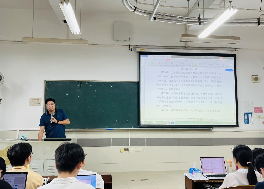 会议伊始,秦格副经理首先强调了遵守考试纪律、维护考试公平公正对学风建设的重要意义,希望同学们务必树立诚信意识,自觉遵守考试纪律,并提出了具体要求,包括提前到场、证件齐全、杜绝作弊、严肃考纪等。随后,舒利敏副经理就期末考试安排及备考要求进行说明。接下来,辅导员梁小健老师向全体同学解读《tyc122cc太阳成集团全日制员工考试违规认定与处理办法》。最后,员工代表余俊烁、徐西郎玛代表全体研究生同学进行了诚信考试承诺。