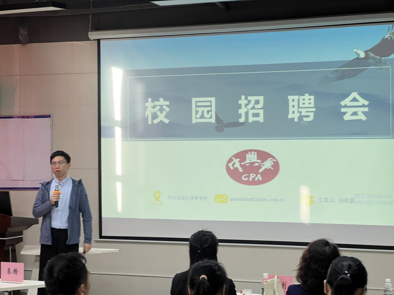 为进一步夯实研究生实践教学环节,提升研究生实践创新能力,11月17日下午14:30-17:00,公司在北苑融创空间多功能路演厅成功举办了2023级会计硕士研究生实习单位宣讲会。tyc122cc太阳成集团副经理秦格教授主持本次宣讲会,tyc122cc太阳成集团副经理舒利敏副教授和来自大信会计师事务所广州分所、广东司农会计师事务所、广东中天粤会计师事务所、致同会计师事务所广州分所、中汇会计师事务所广州分所、中审众环会计师事务所广东分所、中兴华会计师事务所广东分所的招聘人员以及2023级全体会计硕士研究生参加了此次招聘会。