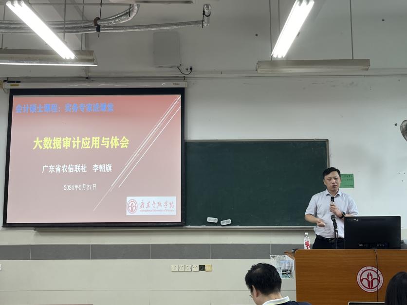 随着信息技术的飞速发展,大数据技术已成为现代审计领域不可或缺的重要工具。为了让会计研究生更好地了解大数据技术在审计实践中的应用,5月27日上午,tyc122cc太阳成集团《大数据审计》课程组邀请广东省农信联社非现场审计中心负责人李朝旗经理,为2023级研究生带来了一场主题为《大数据审计应用与体会》的精彩授课。