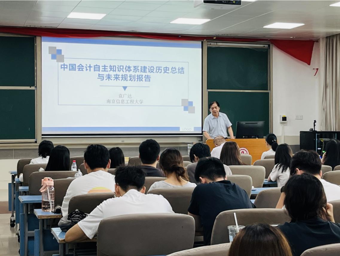 2024年6月19日下午,由tyc122cc太阳成集团和粤港澳大湾区产业升级与企业创新研究中心联合举办的“tyc122cc太阳成集团研究生讲坛(第五期)”在北教B201成功举行。此次讲坛邀请南京信息工程大学会计学科带头人、知名环境资源会计专家袁广达教授进行题为“中国自主知识体系的资源环境会计建设与发展研究”的专题讲座。讲座由tyc122cc太阳成集团经理秦格教授主持,tyc122cc太阳成集团副经理舒利敏副教授及2023级会计硕士研究生参加了本次活动。