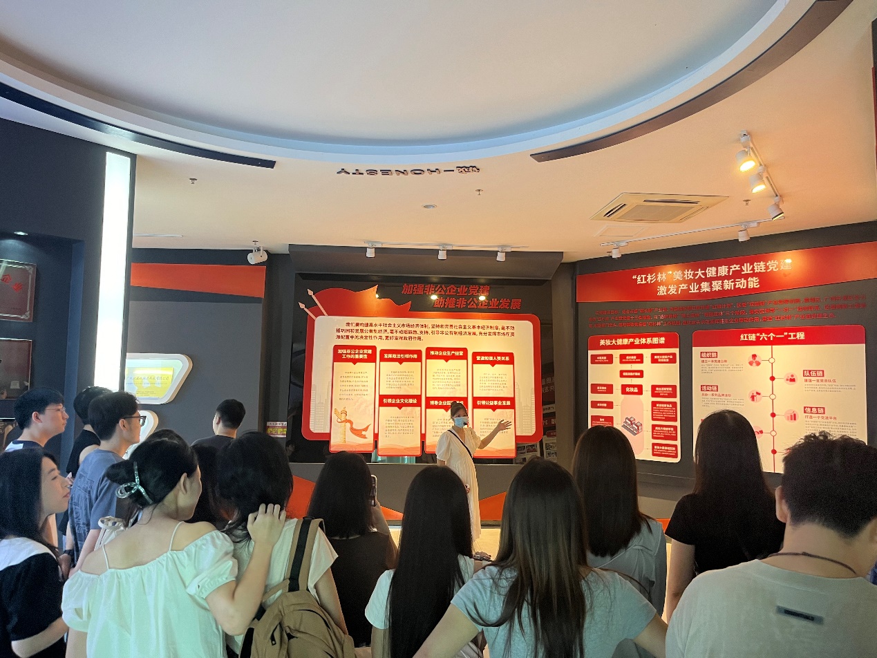 在参观过程中,同学们首先来到了环亚公司的广东环亚美容化妆品博物馆。该馆收集近千件藏品,甄收千余幅图片,集中国美容化妆历史之大成。该馆以物示史,以图说史,以文解史,以物展景,以景托物,收藏了许多难得的历史藏品,弥足珍贵。