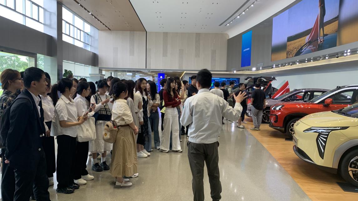 活动伊始,广汽集团的工作人员对师生们的到来表示了热烈的欢迎。此次调研之旅从对广汽埃安新能源全系车型的了解开始,在专业讲解员的带领下,同学们深入了解了埃安在电池、电机及电控技术方面的研发进展和领先优势,并亲身体验了埃安底盘的电子电气系统,认识到互联网技术在工业应用中的重要作用。