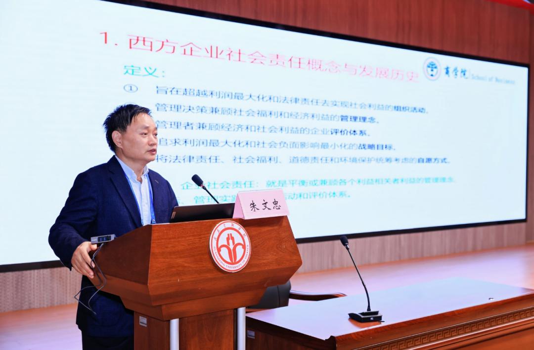 广东省社会责任研究会副会长、广东外语外贸大学朱文忠教授以《企业社会责任与ESG发展的历史维度探讨》为题,梳理了西方企业社会责任概念及其发展历史,分析了全球及中国ESG报告发展历程与趋势以及企业社会责任发展的驱动力,并将中国儒商文化与现代ESG理念结合,提出以“孝、悌、忠、信”为核心的儒家文化为中国企业履行社会责任提供了独特的文化基础。