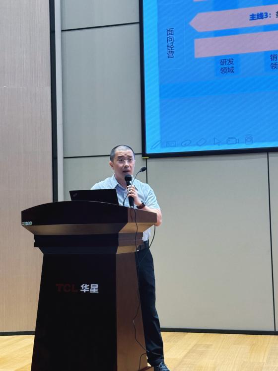 参观展厅后,此次参访学习进入座谈交流环节。广州华星光电公共事务部高级经理袁稹首先介绍了TCL集团和华星光电的企业文化、全球布局战略及其运营情况。随后,华星光电财务部负责人徐伟重点介绍了广州华星光电财务数字化转型的实践经验。他强调了数字化转型对企业运营效率提升的重要性,以及数字化转型对财务人员在跨部门协作与沟通能力方面的要求。具体而言,数字化转型不仅涉及到技术的更新,更涉及到业务流程的优化和员工业务能力的迭代与提升。他指出,财务人员需要具备跨领域的知识和技能,以适应数字化时代的需求。