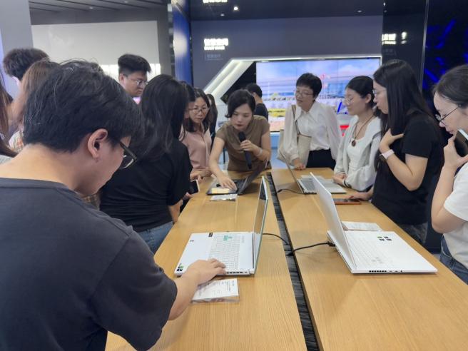 在华星光电公共事务部两位高级经理袁稹和许日越的陪同下,参访活动从华星光电“屏宇宙”展厅开始。在“屏宇宙”展厅,接访人员首先简要介绍了广州华星光电的发展历程和荣誉成就,接着详细解说了该企业在显示技术方面的前瞻性研究和未来发展方向。在展厅里,同学们也体验了企业屏幕产品在各式家电、电子产品与商业场景中的应用,感受到了科技改变生活的力量,也了解到该企业在环保和可持续发展方面的努力和成就。